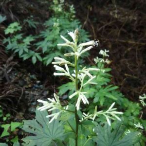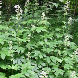 キク科コウモリソウ属の多年草。モミジガサ シドケと呼ばれ、茎先の葉がまだ展開しないものは山菜として食用にされるそうです。