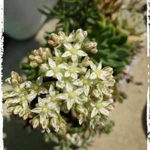 寄せ植えの春萌。 少しずつ蕾が開いてきてます(^^) 鮮やかな色だけど控えめに咲くエケベリアの花も好きだけど、清楚な雰囲気のセダムの花、大好きです♡
