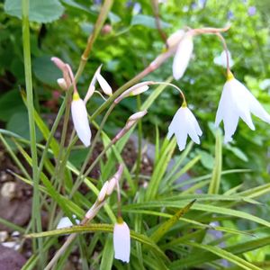 秋咲きのスノーフレーク が咲きました! ②③のタマスダレとは対照的な🔔型です。 残暑厳しいけど、ヒガンバナ科だから。 ④サマーボインセチアも 色付いてきました。 毎年こぼれ種から。