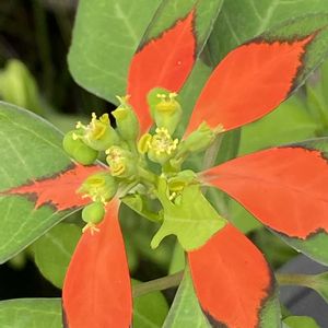 ❤️💚サマーポインセチア💚❤️ (猩猩草ショウジョウソウ) 遠くから見たら赤トンボの群に見えました❤️💚 近くで見ると…赤いのはお花ではなくて葉の色でびっくりポン‼️ 途中からくっきりと色が変わっていてポインセチアだわ😆💚❤️ 毎冬お世話になっているポインセチアとは違っていて…カワイィ❤️ 初めましてでファンになってしまいました😍💕