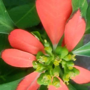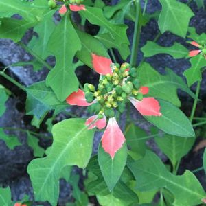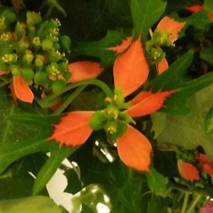 名前が分かりませんが… 知人から6月末に頂いた苗が花を咲かしました…♪♪ ポインセチアに似てはいますが… もう紅く染まっている⁈ 本当にポインセチアでしょうか?