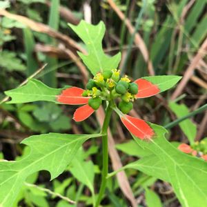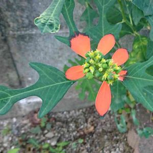 サマーポインセチア😃 毎日、ワンコと夜の散歩で通っていたのに気がつかなかった💦沖縄で見かけた以来で関東では育てられないと思っていたのでビックリ‼️こぼれ種もらいたいな😅