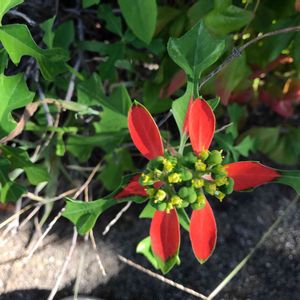 名前教えてください💐 四年前、職場の先輩に頂いてから毎年咲いてくれる のに名前が判りません 以前竹富島でサイクリングしてるときにも見かけました あっ❗ カマキリが😵 サマーポインセチアでした✨