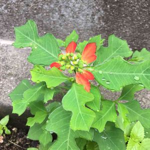 別名 サマーポインセチア ほんと、ポインセチアみたいです💚❤ 🅿アスファルトの間から 毎年、芽を出して強いんですね‼