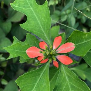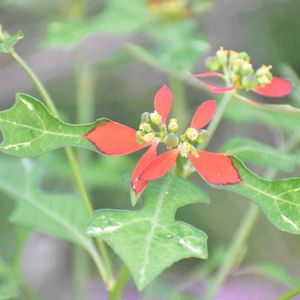 「ショウジュウソウ」 このショウジユウとは、中国の 架空の猿に似た伝説の生き物 別名サマーポインセチアは、熱帯アメリカに分布するトウダイグサ科の多年草です。 分布は、アメリカ合衆国南部からメキシコ、カリブ海を経て南アルゼンチンに広がっています。 観賞用に栽培されていたものが逸失して各地で野生化しており、オーストラリア北部の地域では沿岸地域でごく一般的にみ見られる草花となっています~( ¯ ³ ¯ ) 日本では明治時代に渡来し、現在では九州以南の一部の地域で野生化しています(꒪ȏ꒪) 自生地の熱帯では多年草ですが、日本では冬の寒さで枯れるため、園芸上は春まき一年草として扱います。🌺