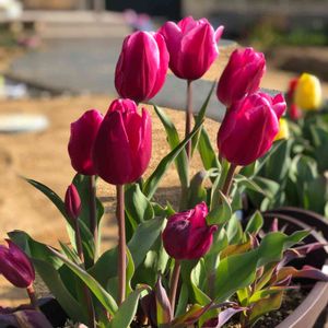 プランターのチューリップ🌷 高さや時期を揃えるって難しいなぁ😅
