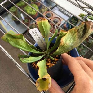 うん、きましたね😅 立枯れ症状抜群のプルプレアです💧 古い葉はもちろん、比較的新しい葉もしおしお〜って萎れてます。 植替え後、試験的に室内LEDライトにて栽培してましたが、灌水がままならずに用土内が嫌気的になり、灌水後、鉢底から出る水から硫黄臭があり、 恐らくこれで根が痛んで立枯れに発展したのでしょう。 灌水による鉢内の老廃物や酸素供給は大切ですね😅
