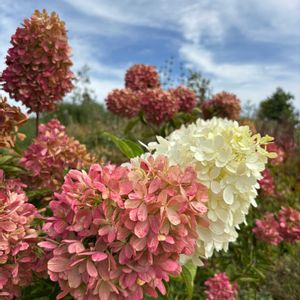 真っ白だったノリウツギのお花が… 真っ赤に〜❤️ 何故か変化したくない子もいますが…🤭 日中の陽射しをいっぱい浴びて朝晩の寒暖差によって真っ赤に〜😆