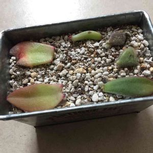 白い点々騒動がありました黒法師さん。 白いのは爪楊枝で取り除き、2回のオルトラン散布で白い点々はいなくなりました(๑´ω`ノノ゙✧ けど、これからも油断せず経過観察です。 あの後、変な形になってきたなぁ〜とおもってたらお子が一周ぐるっと7個もついておりました✨ え?7個も育つ?? というか、ブリキ缶に入れていたのですが、頭が重くて倒れて、階段を2段転げ落ち怪我をさせてしまいましたー(´;Д;`) 折れなくてよかったーーー💦💦💦 植え替えしなければーーー‼️ 黒法師さん、悩みが尽きません。。