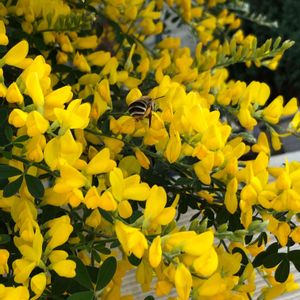 エニシダにお仕事中の🐝さんを見つけました😄 おいしいとこ、集められたかな? とってもいい香りがします😋