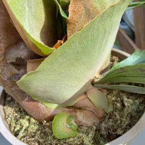 これは… コウモリランの子株ちゃん???? どうしたら、いいんだろ💦 このままがいいか、離してあげた方がいいか…😥