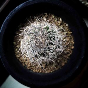 うちのグラキリスさん(徒長) 本来は珠のような綺麗な形なんだけど、バッカーンしてあまり皆の前に出せない子… 徒長しても成長点を守るようにフワフワの綿毛が生えてるのは変わらず おかげで、成長してるのかしてないのかの判別が出来ない⤵ それでも、見えないと余計見たくなる性分で…今日もあっちこっち角度を変えながら凝視 沈黙💬……違和感👀…… なんか新しいトゲ出てる? 覗き込むとガードしてるトゲが目に刺さりそうなので、スマホを望遠にしてパシャリ ……何かよくわからぬ(-_-;)