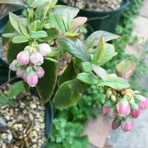 ブルーベリー サンシャインブルー サザンハイブッシュ系 ピンクの小花が咲きました🌸🐝 実がなーれ(*ˊૢᵕˋૢ*)