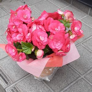 リーガスベゴニアの 濃いめのピンクさん💕 母の日のプレゼント🎶 いつも水やり過ぎて 失敗してしまうので リベンジで頑張ります‼️