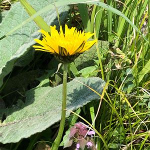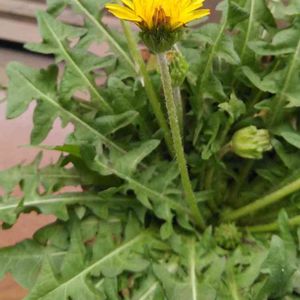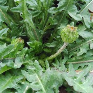 カントウタンポポさん。 寒暖の差が激しいせいかもうつぼみが上昇し始めた