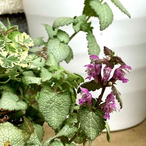 寄せ植えの中でポツンと咲いた ラミウムの花🌸🌿✨ 初めて見ました😊🎶