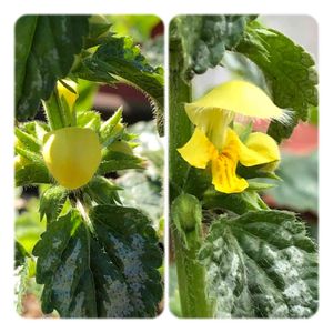 おはようございます🍀 ラミウムの花が咲きました(*^-^*)🎶 シルバーリーフに黄色いお花庭が明るくなりました(,,>᎑<,,)❁