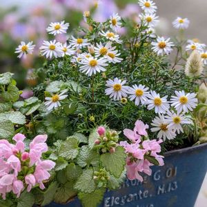 斑入りのハゴロモジャスミンとラミウムの組み合わせ。何となく一緒に植えてみたけど、やっぱり好きな色の組み合わせになりました🤍