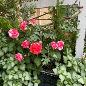 つるバラの下で頑張っているラミウム バラに目がいってしまうかもしれないけど綺麗に咲いてくれてます☺️