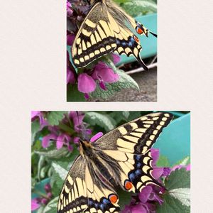 びっくりしました。こんなに早くアゲハ蝶を見たことはないような😳毎日霜注意報が出ているので心配になります。 上の写真を見ると、うぶ毛がいっぱい。調べてみたら、生まれたての特徴らしいですよ。
