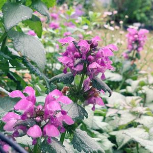 ラミウム、可愛いんですけど広がりまくってます😅 花が終わったら短くカットして他の植物に被さっているのを解消しないと💦