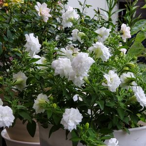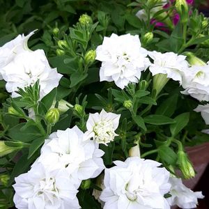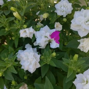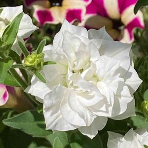 🍀サフィニアフリル ホワイト 切り戻し後、また綺麗に咲きだしました💕 お花は小さいけど、八重咲きで豪華です(ღ*ˇ ˇ*)。o♡ᔆᵘᵗᵉᵏⁱ♡