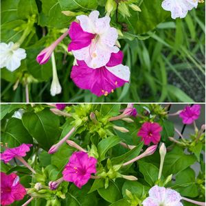 午後に開花する オシロイバナ♪ 子供の頃、黒い種子を剥いて白い粉をおしろいとして遊んだな〜 全草、根や種子に毒性が有ると知ったのはGSで😨 子供やペットが口にしないよう注意です 🌳イチョウは雄雌異株 雄花の花粉が風に乗って雌花に着いて銀杏に 見上げたイチョウに葡萄の房の様な実が 大粒の銀杏を拾って匂う皮を剥き干して、封筒に入れレンチンすると翡翠色でモチッとした美味しいさ😋 葉にもいろいろな効能が有るようで 秋の黄葉も人気ですね💚💛 猛暑が戻ると今朝久々の水やりで ほったらかしの鉢から、いつの間にかの発芽ちゃん、、、 朝顔の種植えた覚えも無いのに? 以前この鉢から小さい赤い花を見たような?で調べてみたら マルバルコウソウが こぼれ種からの発芽だったようで(^^)v 成長見守ります♡