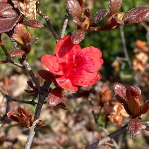 おはようございます! ツツジ?❣️ 茶枯れた植え込みに赤いものが⁉️ もう咲いたの?寒くない?🥰 🏷No more war 🏷平和を願う 🏷武器ではなく花を カタカゴさん主催🏷真っ赤な火曜日 参加させてください🙋♀️ 『いいね』コメントありがとうございます😊🙏 今日も楽しく元気に頑張りましょう❗️