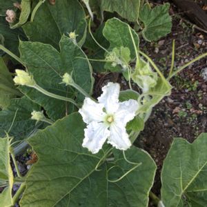 一坪農園の方、いろいろ植えてます! ゴーヤの黄色い花…合ってますよね? ユウガオの白い花の隣には大きな黄色い花も見えました…これはヘチマかな〜 七色畑、楽しい😊