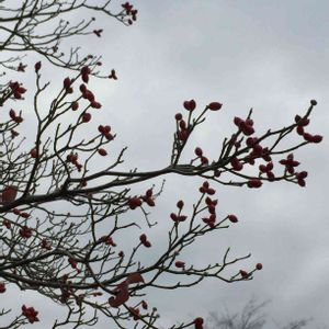 おはようございます! 街路樹のハナミズキ❣️実が赤くてステキだったのに…雲の多い日で逆光…かえって風流かな😆 『いいね』コメントありがとうございます 😊🙏 今日も頑張りましょう!