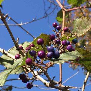 おはようございます! ノブドウ❣️ 三投目すみません😅 寒くなって色が濃くなったように思えますが…「醜男」さんのコメントやググってみると😵 本来の色は白、青や紫の実は虫こぶのためなんですね🧐✨ ノブドウに虫こぶを作る虫は、初めタニウツギ属に来てからノブドウに産卵するそうです 🧐🔍なるほど、このノブドウが絡みついているのはウツギです…なんだか最近ウツギの花が弱く少なくなって、ノブドウがいっぱい蔓延っていたのはそのせいかなぁ😥 『いいね』コメントありがとうございます 😊🙏