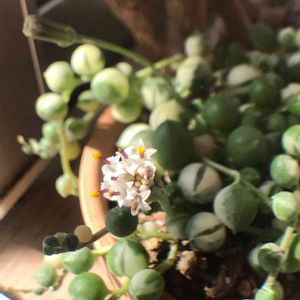こんばんは(ノ◕ヮ◕)ノ*.✧ 🏷毎月8日はネックレスの日 グリネちゃん頑張って夏越し出来て良かったです🟢🟢🟢〰️🟢 コップのフチ子chanも🎅さんにルンルン🎵🎶 2枚目はグリネちゃんのお花が咲いて可愛い💮 3枚目、グリネちゃんハート💚に可愛いです💚 エンジェルchan鉢も仲良くルンルン🎵🎶👼 お気に入りのブロックのユニコーンも一緒💖 繋がりに感謝💓感謝ですね🤗