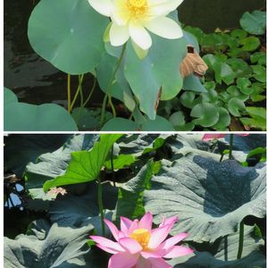 ハス(蓮) 白もピンクもキレイですね~☺️ 葉は大きくて仏様が座れそうです😁 花後の蜂の巣みたいなものも面白かったです🐝