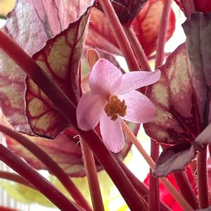 朝晩はまだひんやり。 仕事が始まると鉢の大移動も大変なので、早く通常の暖かさに戻って欲しいなぁ。 今日は水やりのコが多く、水あげたコは、晩は 少しでも温度の高い 階段や2階の廊下に置きました🌱 本当は、プランターのチューリップちゃん🌷にも水やりしたいけど、水あげても室内に置けそうにないので💦 日当たり悪い玄関前のミニ花壇のビオラちゃんは、おとついは回復したけど、きのうからもう回復しなくなっちゃいました😢 土がガッチンゴッチン。コルジリネ レッドスターちゃんもがんばれー🏁 きのう、買い物行く途中🚗のできこと。 旦那が右折するときに赤信号で止まると、後ろの車からおじさん降りて歩いてきて❗️、「なんで止まるんなー💢 オメエが止まらんかったら俺も行けたんじゃ」とか言い出して。 旦那が、「前の車は赤信号で行った」と言えば、「赤じゃなかった」とか言って なおもグダグダ言ってました。 「警察呼びましょうか」とでも言わないとダメかと思いました💦 本当にそういう人いるんだなぁーと思いました。 今日の写真📷は、きのう買い物中 スーパーの花屋さんで出会った レックスベコニアちゃん💕 「わぁー これ本物? 偽物??」と言ってしまいました。 ラメが入った赤紫みたいな色の 一見 ベルベットみたいな葉っぱ。 写真撮って載せるだけのつもりが、やっぱり気になって、買い物カート置いて買いに行き、車に置きに帰って、また食品売り場に戻ったという・・。 育てるのがちょっと大変かもしれないけど、このきれいさを保つことができたらなぁと思います❤️