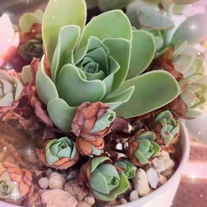 子宝草 復活育成プランターを久し振りに覗いたら大きく育っていて嬉しかった〜♥ お子達は落っこちました(•'-'•)🌈♡