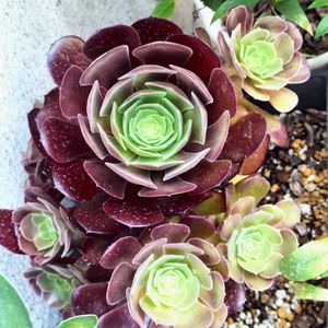 まだら黒法師 昨年はベランダにいました。 夏場に駄目になり掛けたのでそのまま頭をカット✂ 場所を玄関前に移動。 今は、お子達が育って仲良く寄り添っています🍀(* ॑꒳ ॑人 ॑꒳ ॑*)🌼