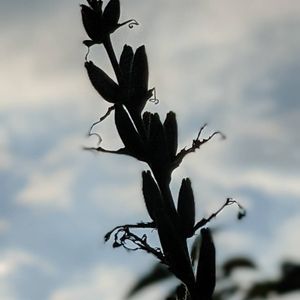 池の端の丈高い雌待宵草です。お花はすっかり終わり、実を沢山付けています。 早朝の空にスッと映えていました。 🏷雲仲間