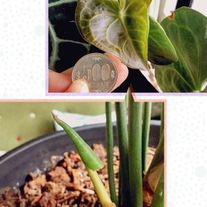 ■Anthurium アンスリウム ・フーケリー 斑入り ・クラリネルビウム 斑入りのフーケリーさん、新芽が出てきました😆年に2-3枚出ればいいかなのペースなので楽しみです☺️ 最高気温28℃、最低気温19℃