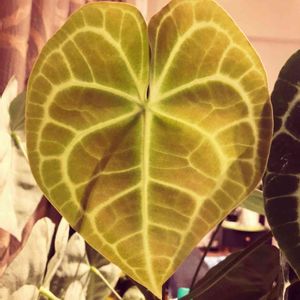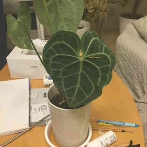 美しい葉脈を楽しむアンスリウム 🌿 アンスリウム クラリネルビウム! しばらく観葉植物の投稿をしてなかったので ニパドラに続き久々のグリーン系の投稿です🌱 こちらのアンスリウムは 花よりも葉を楽しむタイプです。* ビロードのようなダークグリーンの葉に くっきりとした美しい葉脈が映えます♪ 葉がハート型なのもかわいいです❤︎