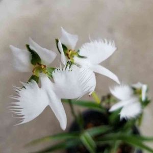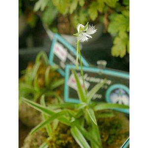 サギソウ 銀河 我が家の5種類のサギソウのうち これで4種類が開花したことになります。 この子は サギソウらしい形をしてます。 大きさは 暁より小ぶりです。 朝露に濡れた様子が涼を運んでくれます。