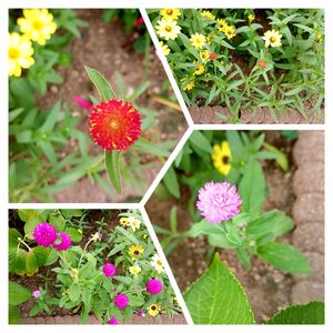 花壇の縁取り係で、咲きそろったセンニチコウ オレンジ🧡 紫💜 ピンク🩷 隣には、ヒャクニチソウが迫っています😅 去年の種から咲かせました🌱☘️🌿💐