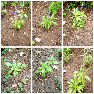 ブルーサルビアの挿し芽を花壇の空きスペースに移植し、なんとか咲いている株💜💜💜 なかなか大きくはなりませんが、半分くらいは咲いています😅 ②元株の花 ③挿し芽の全体