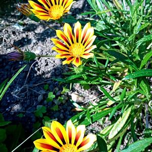 庭のガザニアが、6個に増えていた💛💛💛💛💛💛💛 真夏でも、これだけたくさんは咲いていません💐🎉☘️