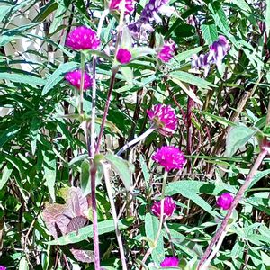 自宅花壇のセンニチコウは、放ったらかしでもいつまでも咲いています😊 💜❤️があります