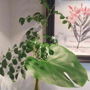 一ヶ所しか切れ込みのない葉もニッチのライトが当たってスタイリッシュ💟🕺💟 切れ込みの所、細い糸のように繋がっています😊 ✨💎植物の神秘💎✨