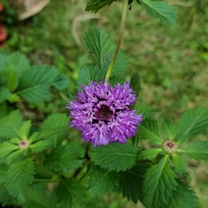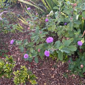 【ムラサキルーシャン】 紫でまんまるなかわいいお花 名前がわからず帰って調べました。 『葉をこするとリンゴのような香りがします。そのため日本ではリンゴアザミとも呼ばれています。その香りを楽しむためにポプリとして使用されます。』 え〜っ 知っていたら、葉っぱに鼻を近づけたのに。 まあでも自分のうちじゃないから、葉っぱをこすることはできないですね。 キラキラ紫🌟輝いていました。