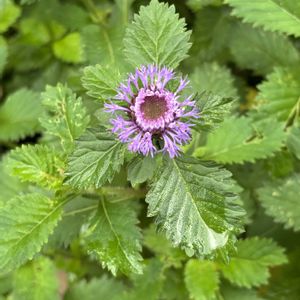 ムラサキルーシャン 別名ルリアザミ、リンゴアザミ 半耐寒性多年草 丈50cm 花径2.5cm ★葉はアザミのようなトゲはなく、木苺の葉を可愛く丸っぽくした感じ。柔らかい葉をこするとパイナップル、リンゴのような香り🍎 花期はとても長くスゴク丈夫です😙 鹿児島では対策なしで冬越し出来たり出来なかったりですが、こぼれ種で毎年咲きます🌱 母宅(鹿児島県)