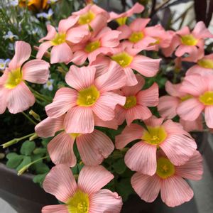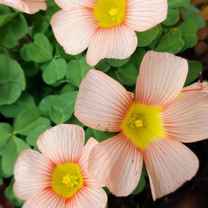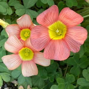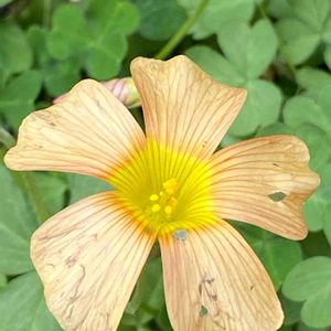 オキザリスちゃん☘️☘☘️ サーモンピンクのストライプ柄 繊細そうなお花が咲いています✴