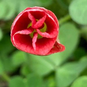 オキザリスコモサ 園芸店の隅っこで、しょぼくれてた 見切りの子を救出😀 クルクルの蕾、縦ストライプ、サーモンピンクに癒やされます☺ 花期は短いのかな?でも可愛いかったのでお迎えしました。