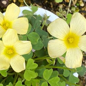 オキザリス コモサイエロー 日本のカタバミの仲間です 強健で一度植え込めば毎年可愛らしいお花を咲かせてくれます お花の少ない冬の間ずっと咲き続けてくれます 花壇やお部屋にぬかを華やかにしてくれそうです💛